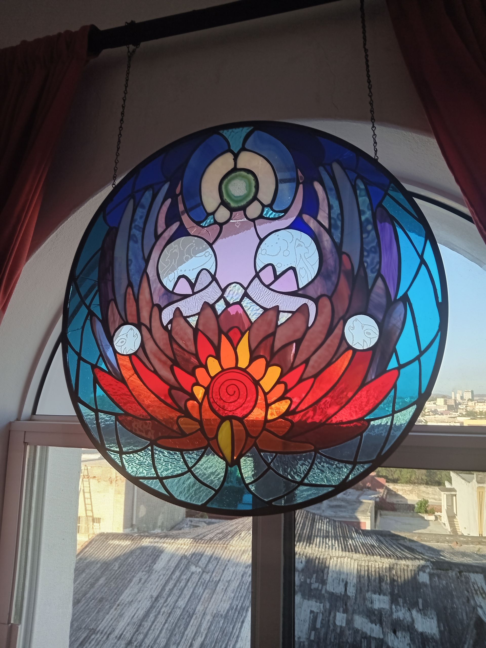 Evelyn Wolff, MD Cert.GP Psychotherapy, has balanced a life in the healing arts as a holistic physician and educator, with that of being the designer at Wolff's Glass Studio in Toronto, Northern Ontario, Peterborough and where she winters in Mazatlán, Mexico. Her unique artistry combines a finely tuned colour sensibility, with a solid apprenticeship in the European tradition of stained glass with Robert Jeckyl, through Sheridan College in Toronto. Independent studies at Ontario College of Art include three dimensional design, low relief glass casting, silk-screening, and glass painting, with Shirley Fineblit and Allan Stein.